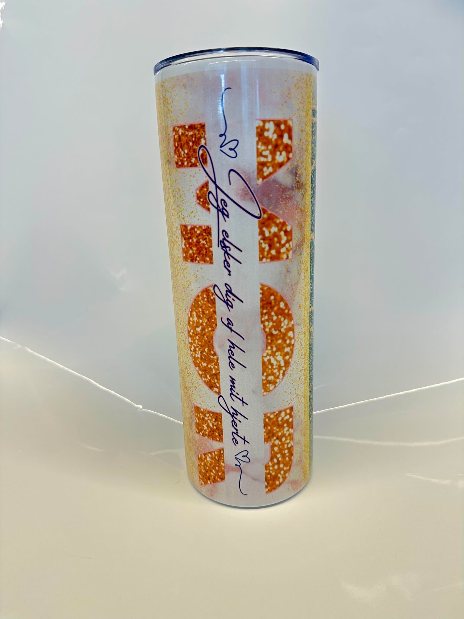 Koppen kommer med et plastiksugerør til kolde drikke, et metalsugerør til varme drikke og en sugerørsrenser.