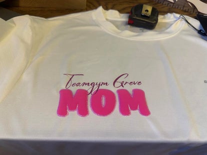 De er lavet med HTV glitter vinyl og sublimationstryk.